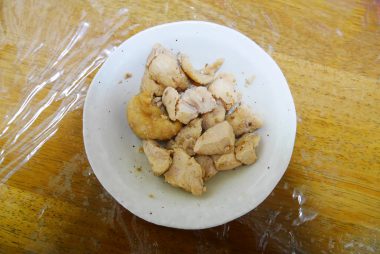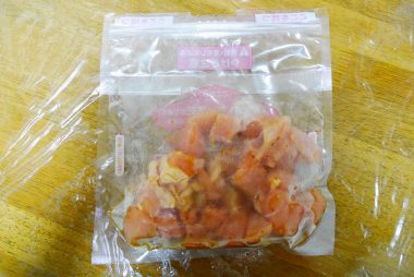 袋の中に鶏肉と調味料を入れて、もみ込み放置。