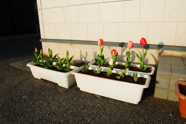2週間前に古河店に行った時、チューリップが咲き始めてました。