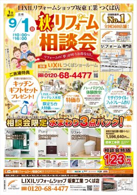 さて、今週末の9月1日(日)はLIXILつくばショールームで