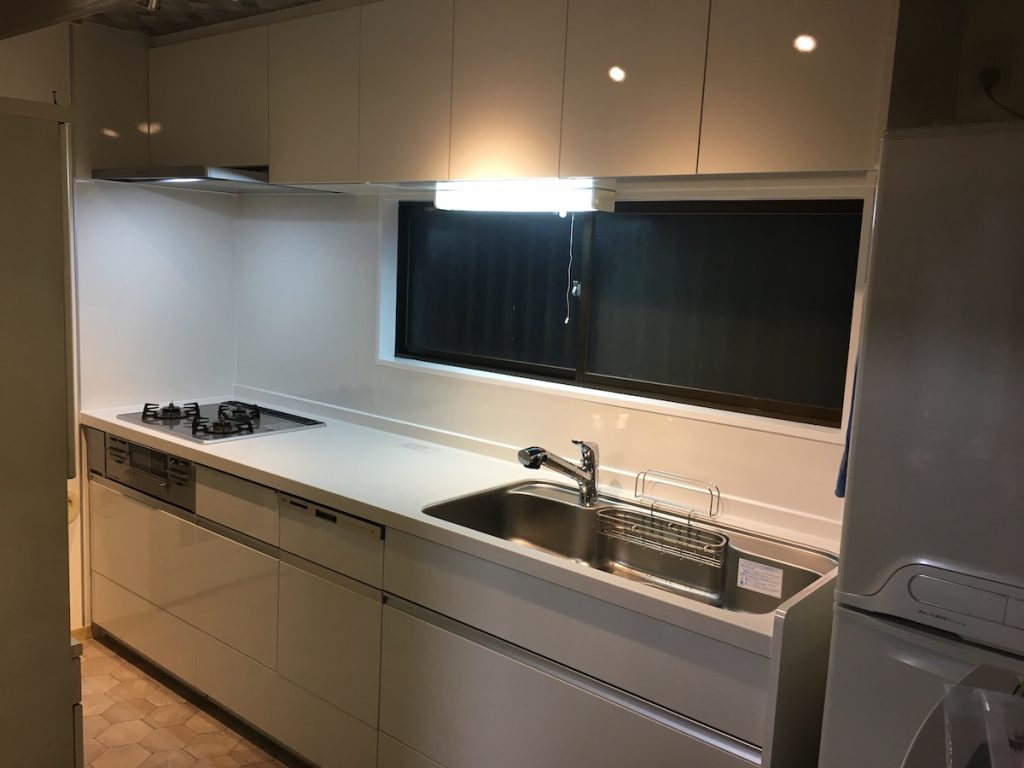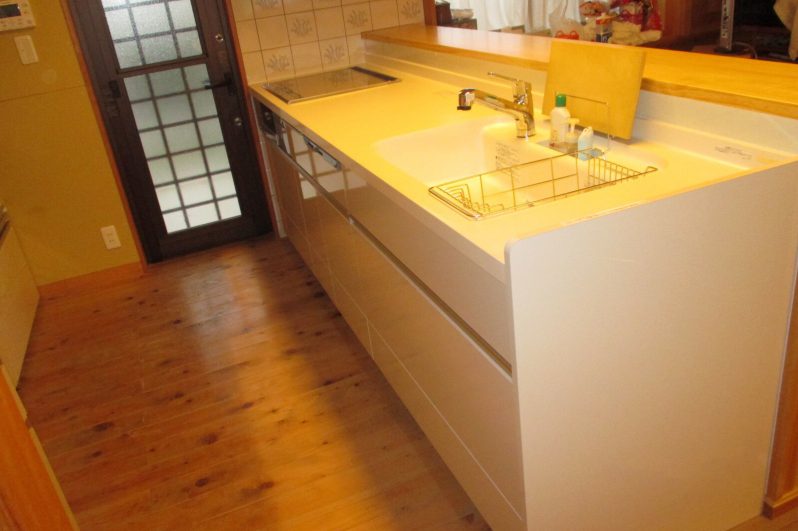 システムキッチンと食器棚の交換を行いました。