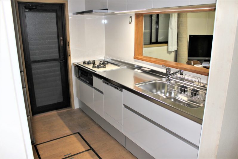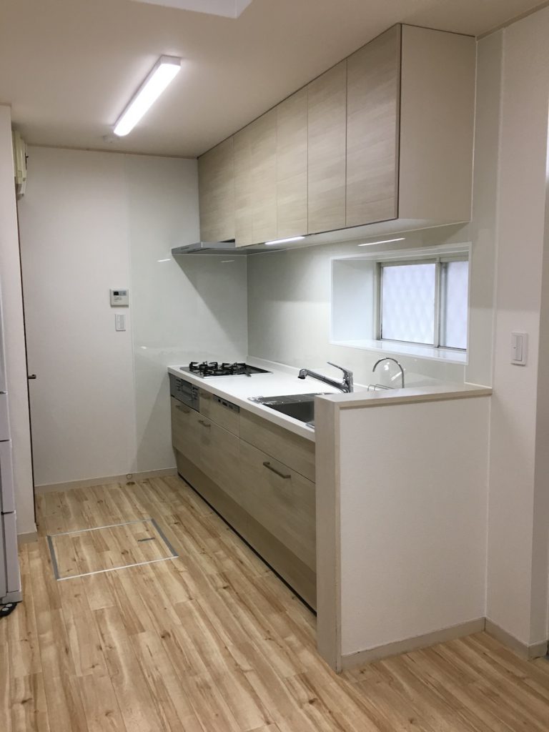 以前は対面式のキッチンでしたが、壁を作り独立したキッチンにリフォームしました。
