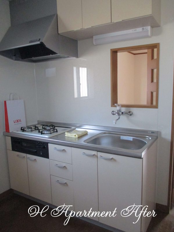 施工内容は、システムキッチン入れ替え、カップボード新設、LDKフロア上張貼り、電気配線、分電盤交換、設備配管改修、木製建具改修、内装クロスそして洗面室棚の新設でした。