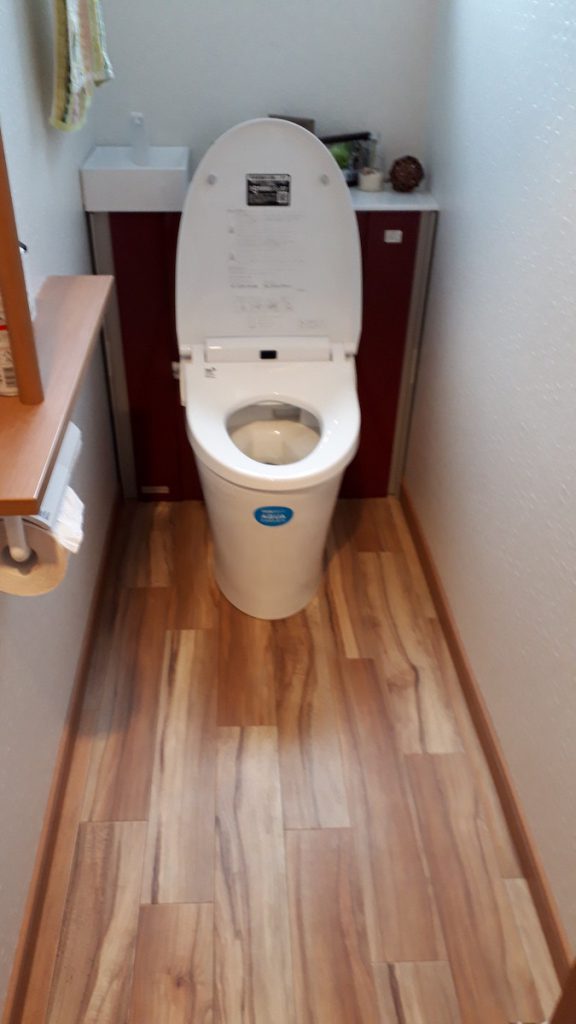 トイレの交換、床のクッションフロアの貼り替えを行いました。