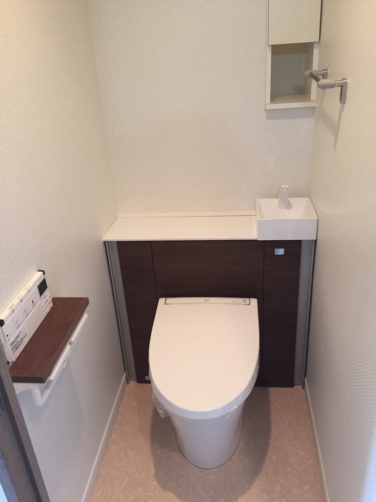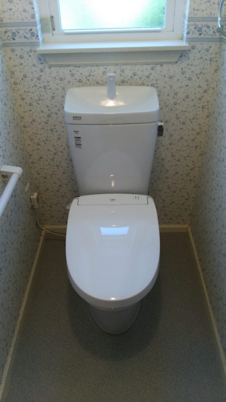 トイレの交換、床・壁のクロスの貼り替えを行いました。