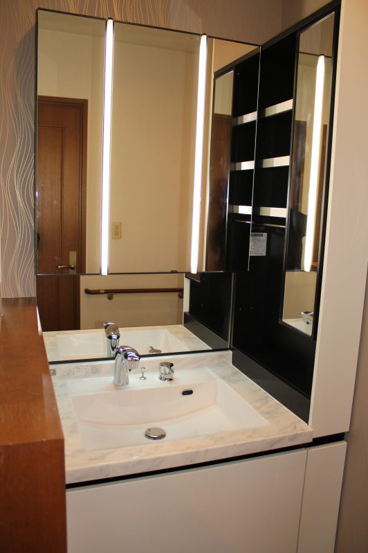 間口は既存の洗面化粧台と同じ1m20cm幅にしました。