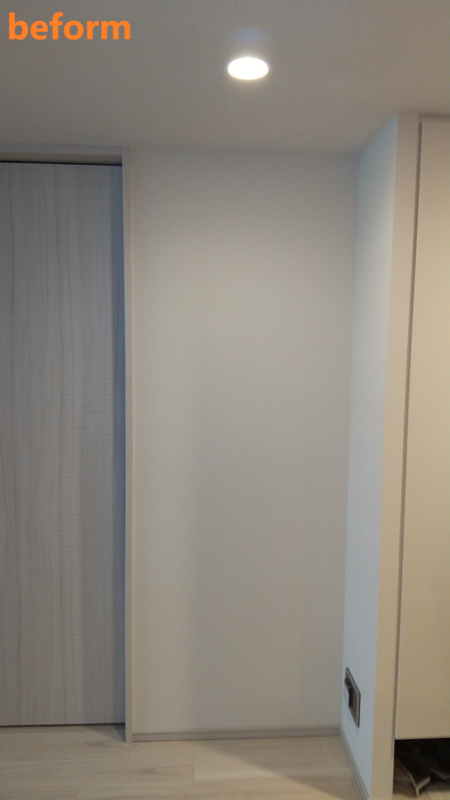 クロス仕上げの壁に、2面だけ化粧柱を取り付けしました。