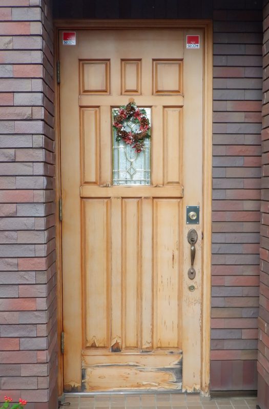 玄関ドアが西側で天然木製の為、西日や雨により足元部分が