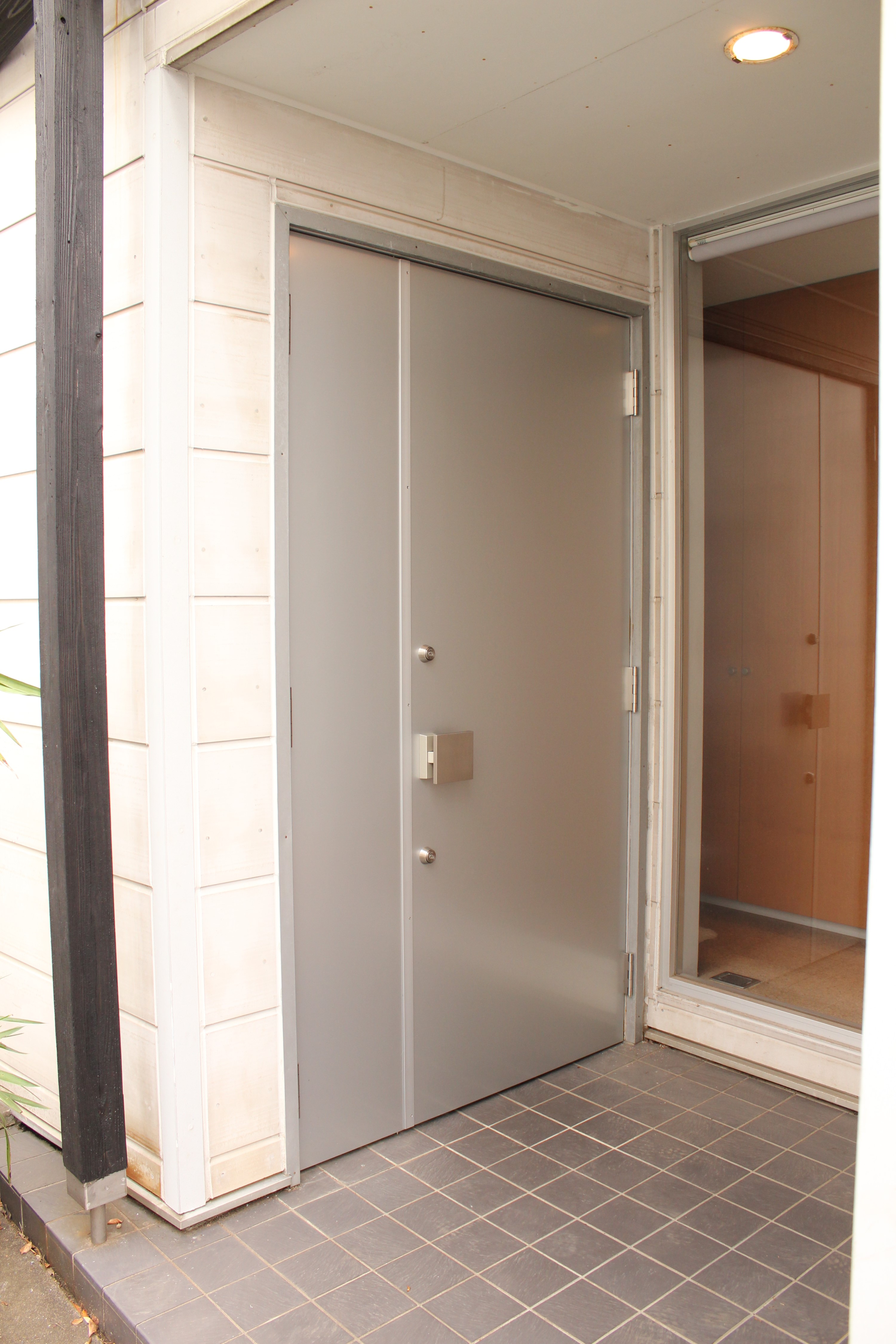 オーダーメイドで木製からアルミの玄関ドアに変えました。